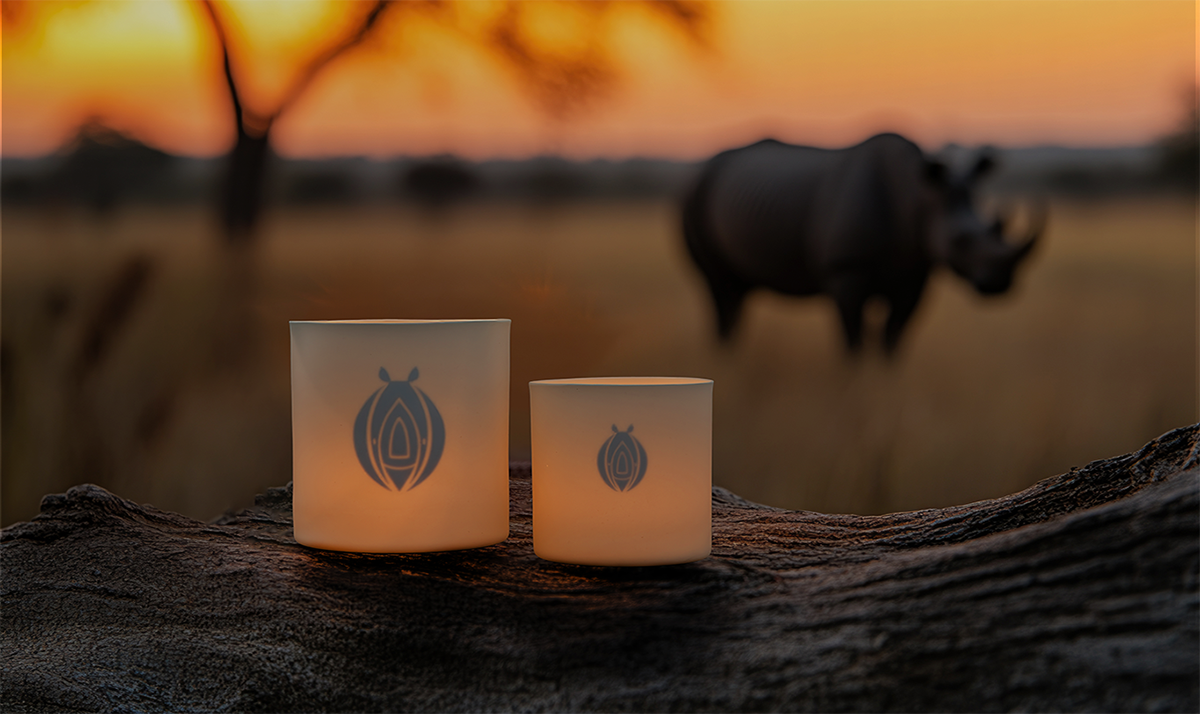 These windlights are more than decorative objects. They are illuminated sculptures, each carrying a powerful message hidden in their form. The design is as poetic as it is purposeful. At first, when unlit, the rhino symbol remains barely visible – is faint, fragile, almost disappearing into the background. But once you light the candle within, the rhino silhouette emerges – clear, bright and vibrant. This transformation symbolizes what is at stake: if we do nothing, endangered species like the rhino will fade into silence and disappear. But with awareness, with action – with light — and support – we can bring them back into view and protect what cannot be replaced.